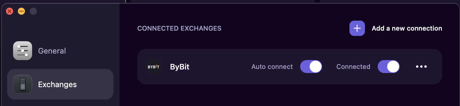 To set up a connection to Binance and Bybit (Bybit exchange has been available since version 0.17.):